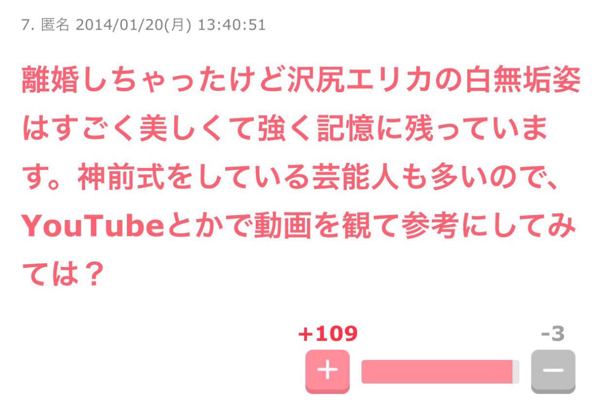 100 名無しさん@涙目です。(徳島県)@\(^o^)/ [ニダ] :2017/07/22(土) 17:23:18.69 ID:kBGpUJig0.net俺はオッサンだが沢尻さんはそんなに嫌いではない