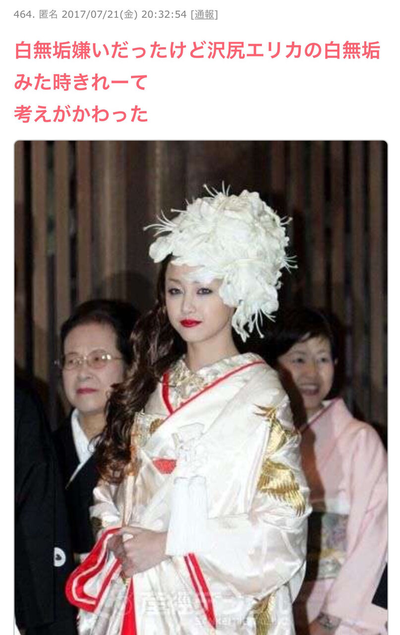 45 名無しさん@涙目です。(神奈川県)@\(^o^)/ [NL] :2017/07/22(土) 15:18:14.59 ID:+SwQ44L20.net俺の知ってる白無垢と違う