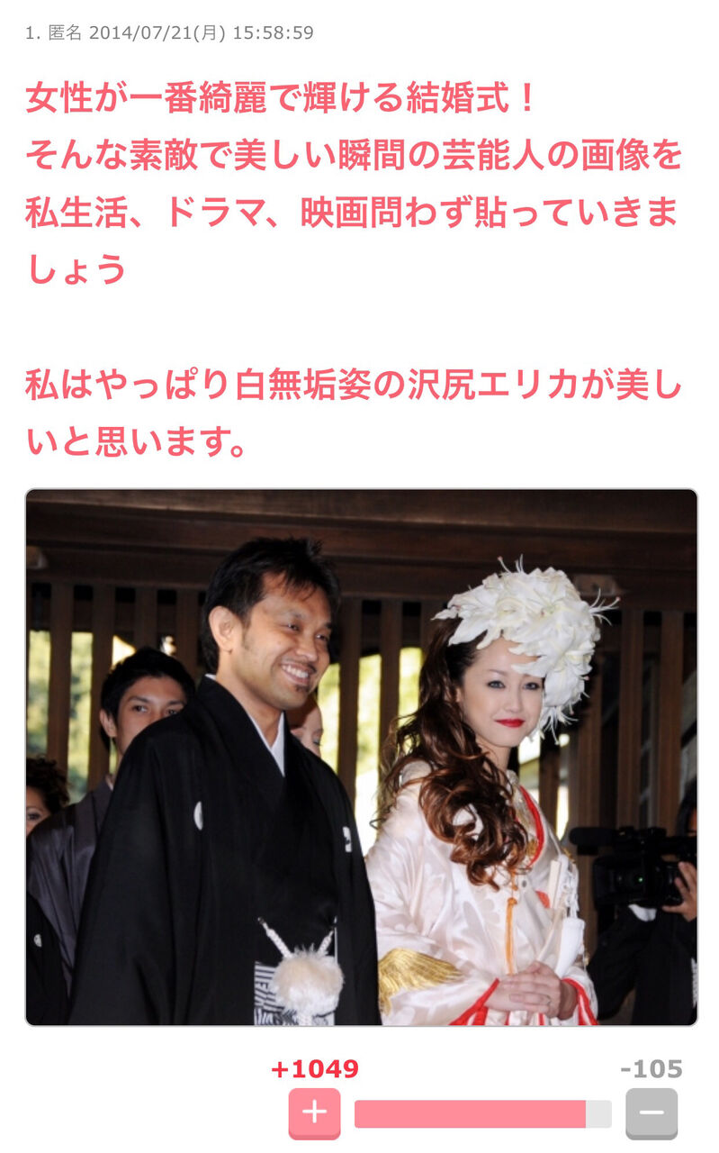 70 名無しさん@涙目です。(東京都)@\(^o^)/ [ニダ] :2017/07/22(土) 16:19:18.80 ID:dKu3yyA10.net当時、ウエディングケーキを頭にぶつけられたみたい